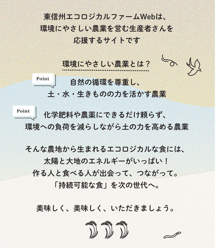 東信州エコロジカルファームWebは、環境にやさしい農業を営む、